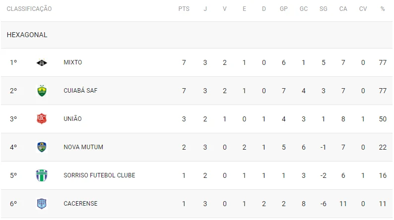 Após jogos da 3ª rodada, o Mixto assumiu a liderança do hexagonal final do Campeonato Mato-grossense Sub-20. O Tigre soma 7 pontos e fica à frente do Cuiabá no critério de desempate de saldo de gols (Tigre tem 5 contra 3 do rival). O campeão garante vaga na Copa do Brasil Sub-20 e na Copa São Paulo Jr, o vice-campeão também tem direito de vaga na Copinha.